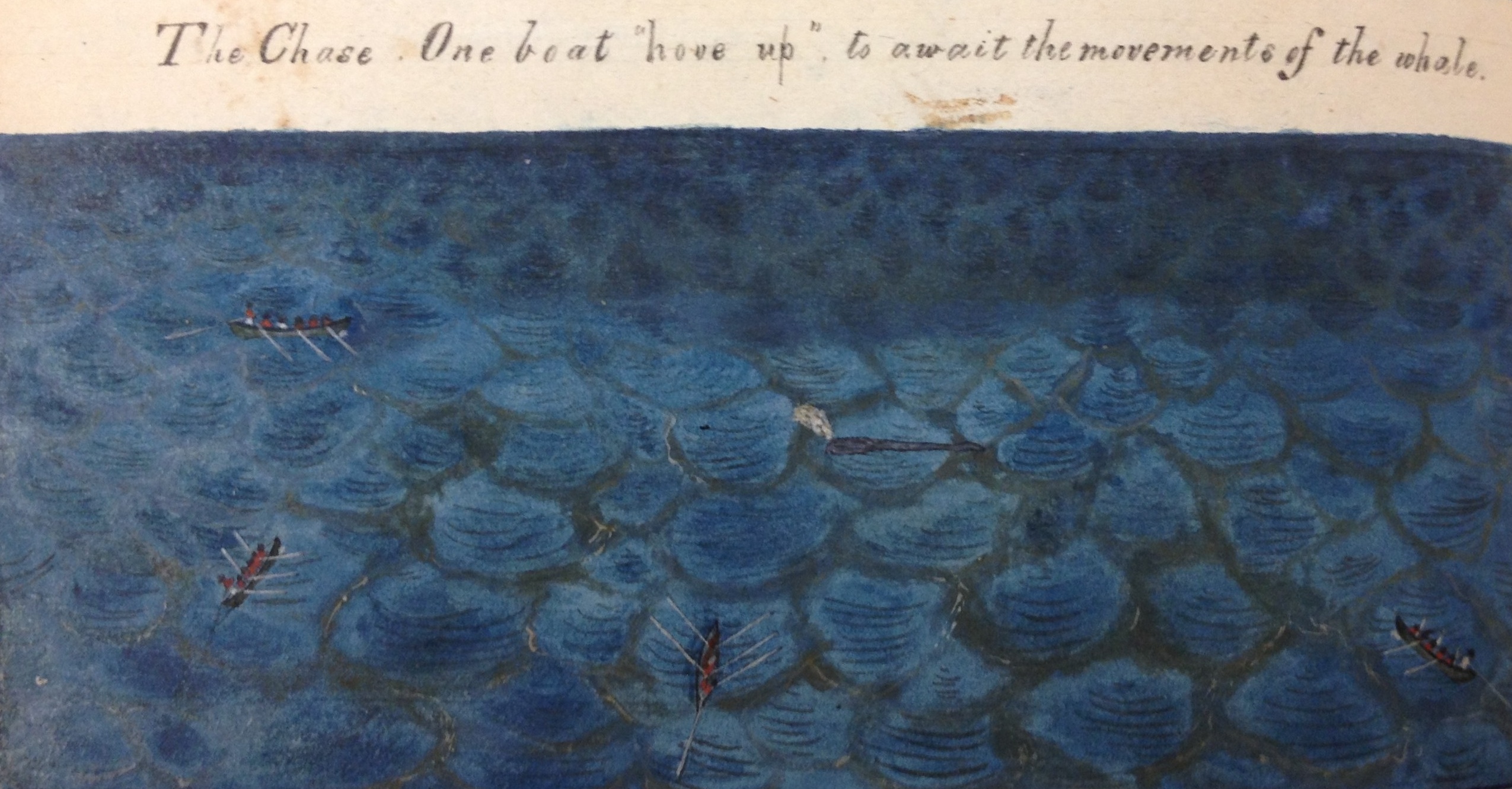 Whaleboat and whale tail. Courtesy of the Beinecke Rare Book and Manuscript Library, Yale University.