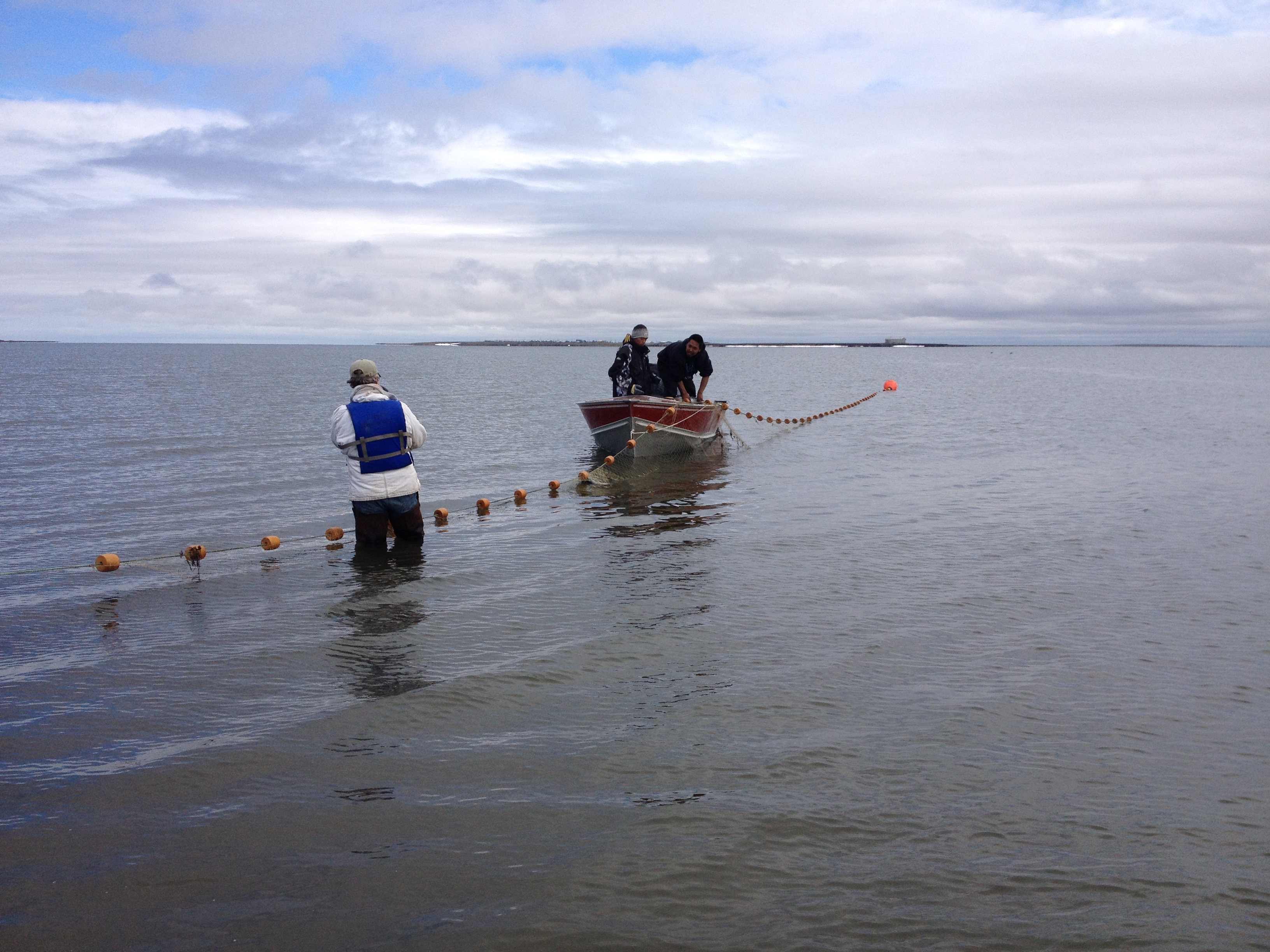Checking a fishing net in Elson Lagoon.