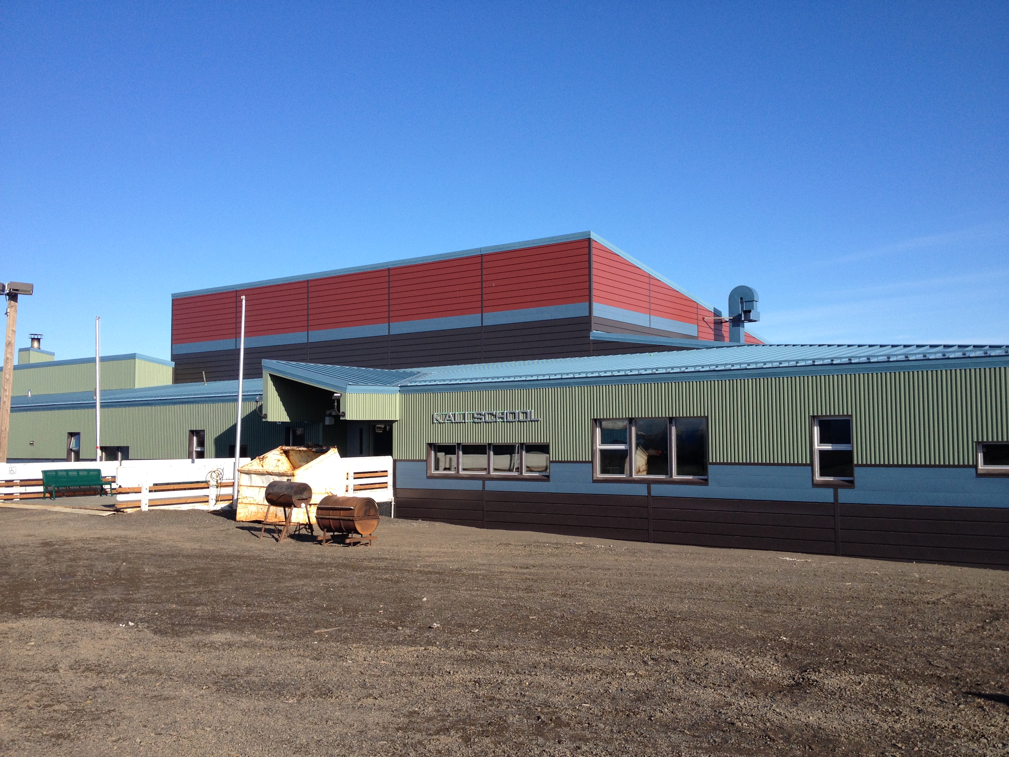 June 28 – Sunday. Packed our gear, boxed our food, cleaned and swept the ARF by 10:30 in preparation our trip to Point Lay (Kali). We checked in at the airport which took a while because seven of us (including Leslie) were carrying lots of gear and food. Because of delays, we had a little extra time to go to the AC and have breakfast and get some last minute items. By 2pm, we were boarding our flight and bound for the Inupiat Village of Point Lay, population about 250. Once we landed, we settled in at our new accommodations in the classrooms at Kali School. After a brief orientation and learning some rules of the road, Crissy and the kids went to see Marjorie Long and her family. The rest of us relaxed a bit. Later, Robert, Leslie, and I spent time in the kitchen making dinner – spaghetti and meat sauce.