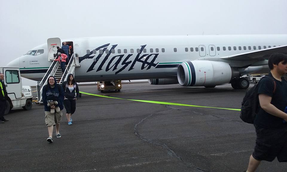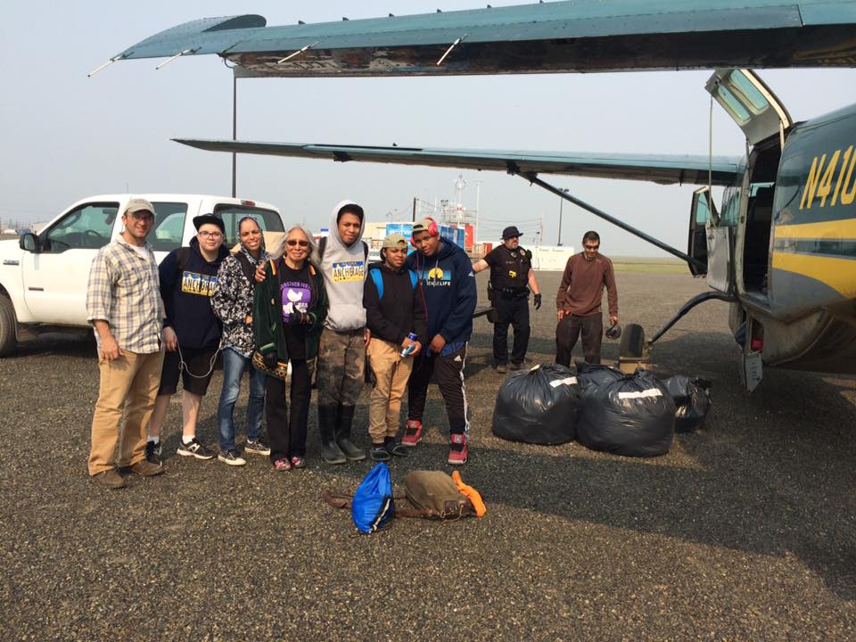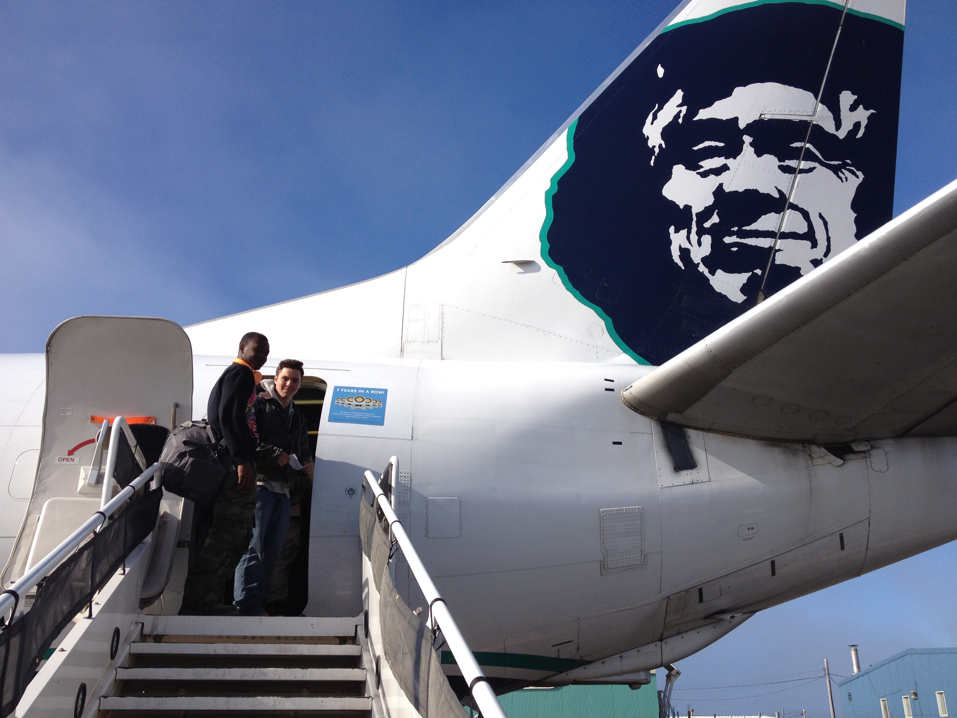 June 25 – Yikes! Alarm accidentally set for 2:50pm instead of 2:50am. Overslept a little, but up early to catch a shuttle from Mashantucket Pequot Reservation to Hartford for this year’s cultural exchange. This year, I travel with co-chaperone Crissy Gray and four Mashantucket Pequot students, Aakyia Goodwin, Anthony Rose, D’vante Colebut, and C.J. Moore. We made it to the airport with plenty of time and no lines, but for some reason there was lots of confusion behind the scenes and we missed our flight. So we lived in Bradley International Airport for the day! Sleeping, reading, people watching. For me, four hours on the phone trying to get United Airlines and Alaska Airline to speak to one another. Eventually, Crissy, Anthony, and Aakyia took a 4:30pm flight to Chicago and C.J., D’Vante and I caught the 6:00pm flight. We met up and took the midnight red-eye from Chicago to Anchorage. Looooong day…
