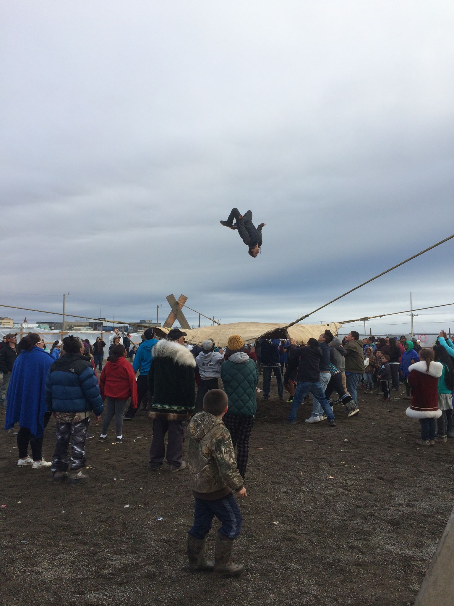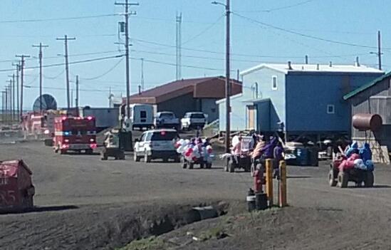I took a nap and Crissy and the students visited nearby Ilisagvik College for access to wi-fi. We later met up with new arrivals, Dr. Tracy Romano from Mystic Aquarium and Greg O’Corry-Crowe from Harbor Branch Oceanographic Institute in Fort Pierce, Florida. After a pizza dinner, my Pequot companions went to bed. I stayed up and after some discussion of whaling politics and whale science, Tracy, Leslie, and I went back to the Nalukataq for the blanket toss. We arrived at about 10pm to an ambulance taking an injured tossee away, but watched as the festivities continued. We passed on watching Eskimo dancing as we were very tired. Sleep calls…