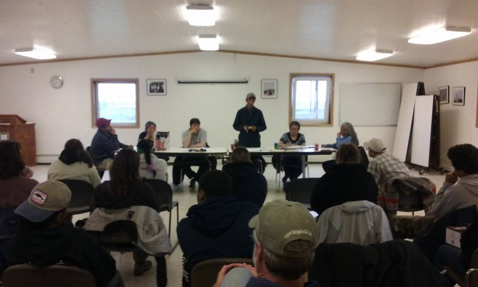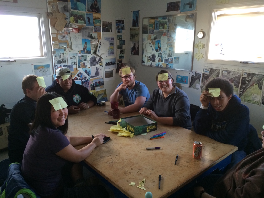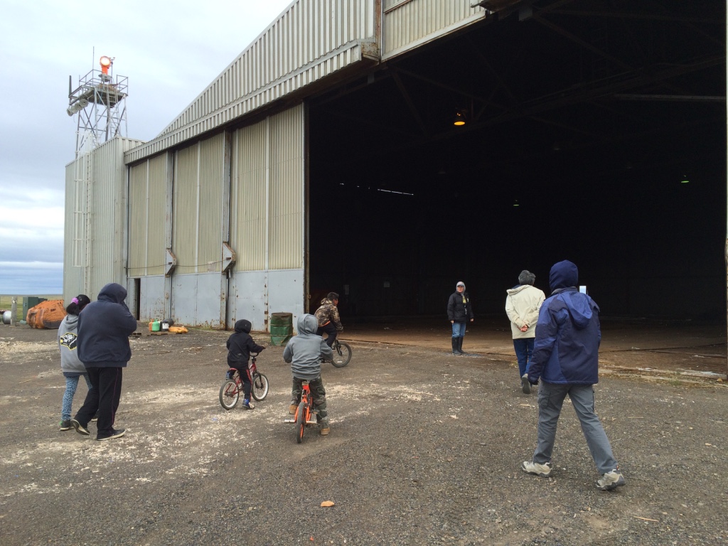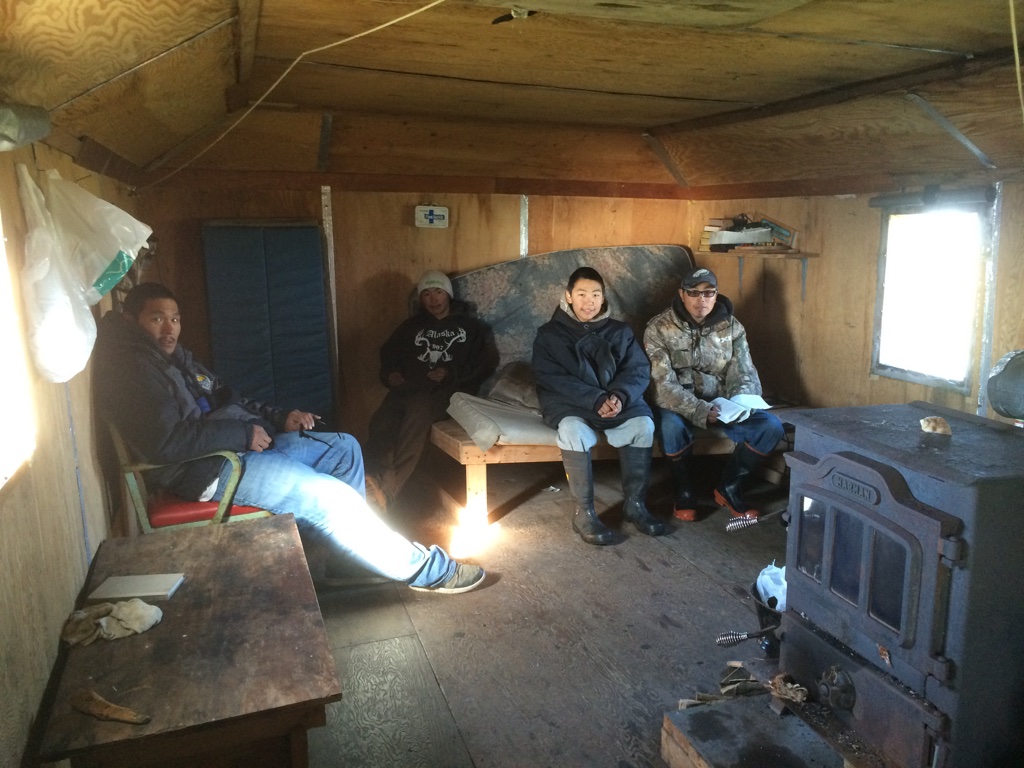 When we returned to the school about 5pm, I made dinner while others rested or played the dice game, farcle. I jumped in when I could to play. After dinner, we continued farcle and Leslie Stalker joined us. Crissy went to visit our friend and former chaperone, Lily Anniskett. The Pequot students were connecting with Point Lay students and the rest of us had movie night: Big Miracle – about three gray whales trapped in the ice near Barrow. Based on a true story, we learned about many of the characters and scenes portrayed in the film from Robert and Leslie. After the movie, at about midnight, we all played floor hockey in the gym. We had a great time and soon after started winding down, thought the Point Lay kids were starting to visit again. We were planning an earlier day out on the lagoon so I asked everyone to get back to our “normal” schedule. We’ll see…