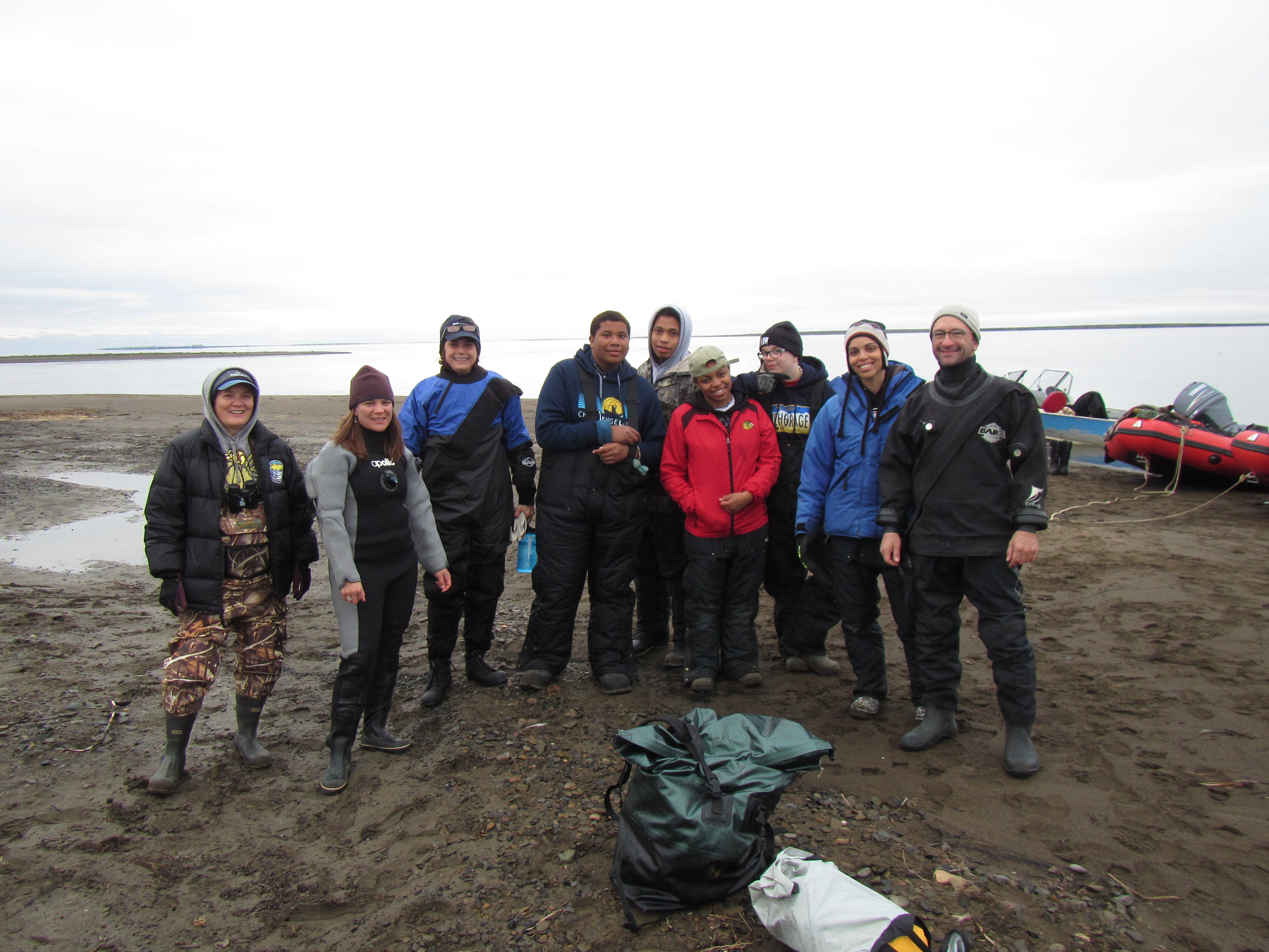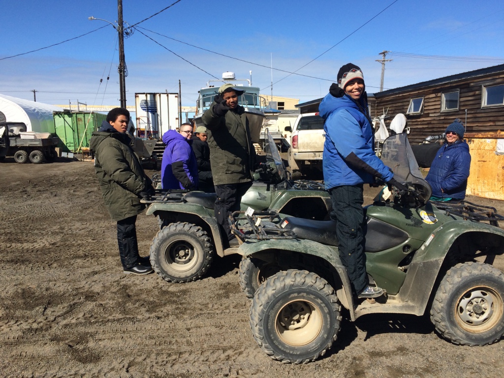 Crissy “Polar Bear Bait” Gray can’t wait to go to the top of the world! Outside the ARF gearing up for a visit to Point Barrow. D’Vante, Anthony, Aakyia, and C.J. all geared up.