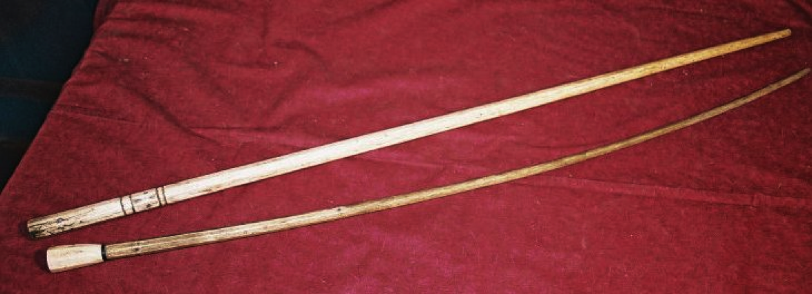 - Whalebone canes. The lower cane belonged to Jacob Fowler (From the collections of the Tantaquidgeon Indian Museum, Uncasville, CT)